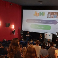 Das JuKi ist ein ganzjähriges medienpädagogisches Projekt: Kinder und Jugendliche kuratieren Filme, planen Events, moderieren und drehen eigene Werke. Filmwerkstätten vermitteln Technik und Dramaturgie. Das Festival schafft einen niedrigschwelligen Erlebnisort für Medienkompetenz, Teilhabe und Kreativität – im Kino, vor und hinter der Kamera.
